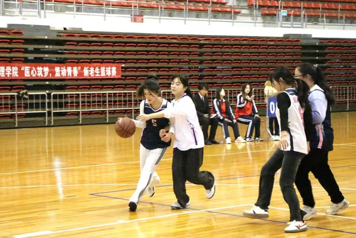 赛场上,双方队员劲头十足,配合默契,用一次次精彩投篮和积极防守展现出对篮球的热爱与不服输的劲头。现场观众呐喊助威,掌声与喝彩声此起彼伏,持续点燃赛场激情。最终由老生组成的“医路顺风”队男篮以41:32战胜新生组成的“医脉相承”队,由老生组成的“逐光女篮”队女篮以6:5战胜新生组成的“星火篮球”队。
